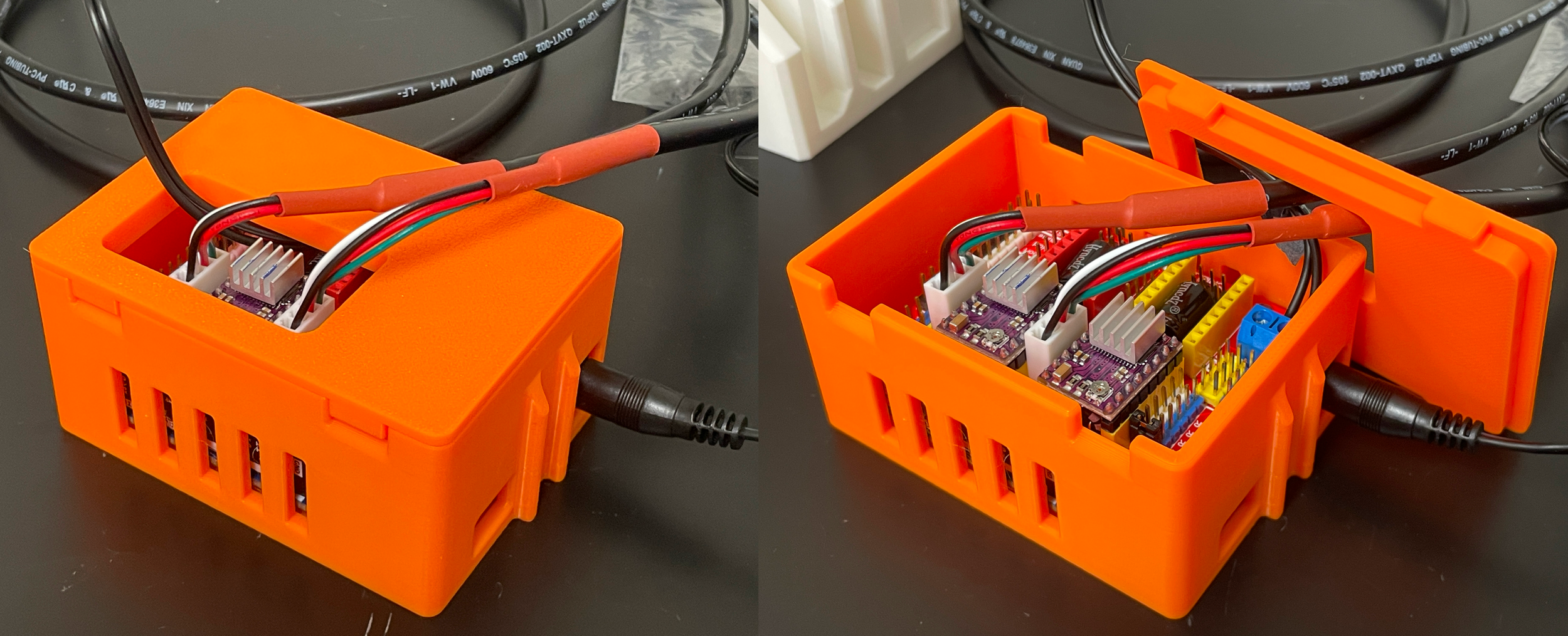 Figure 3. Electronics case for the gantry, housing an Arduino, CNC shield and stepper motor drivers.