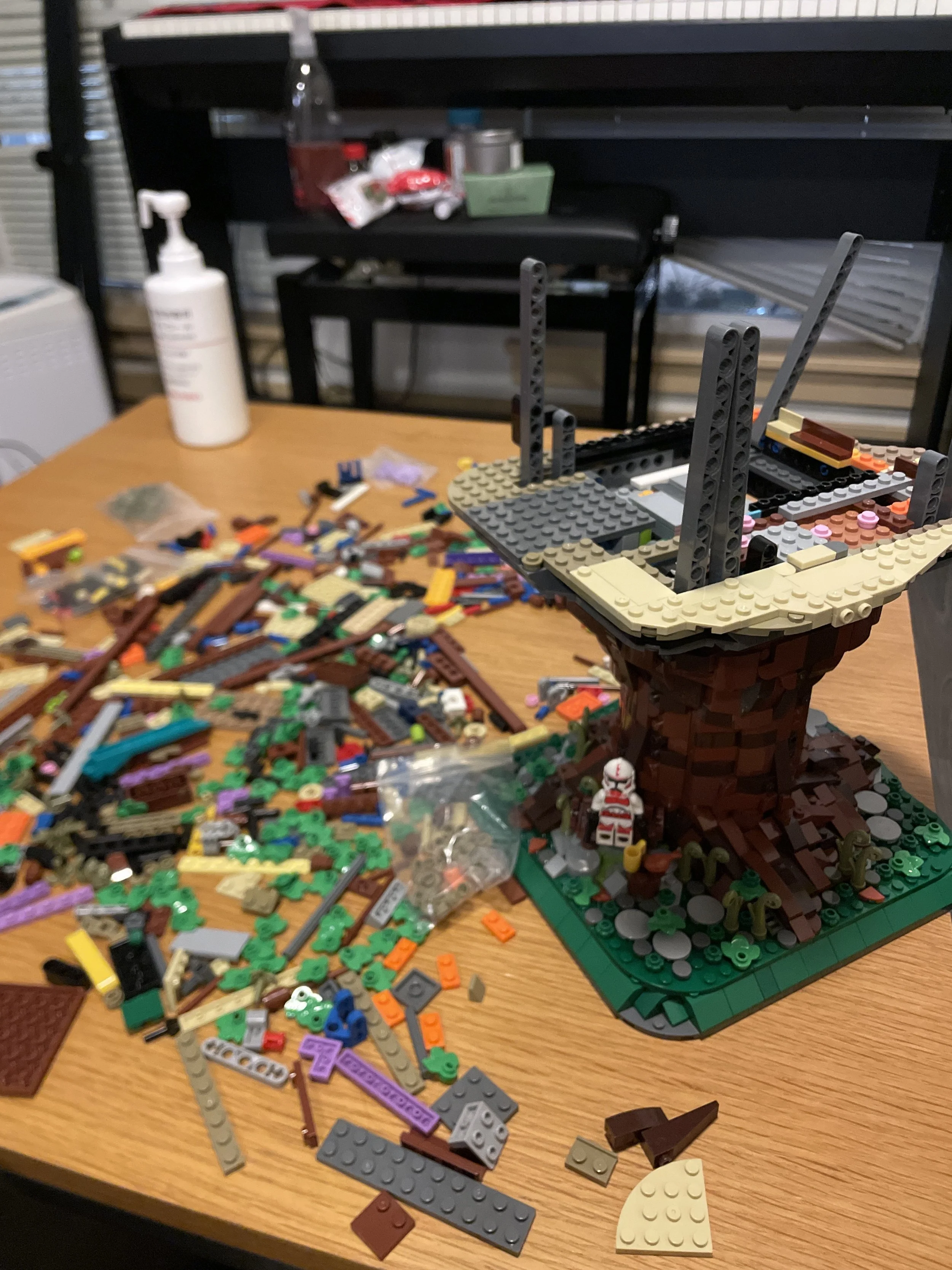 After reaching a final design, we ordered components for delivery. However, delays in shipping made it necessary to create a separate back-up model using a random assortment of bricks from the lab.